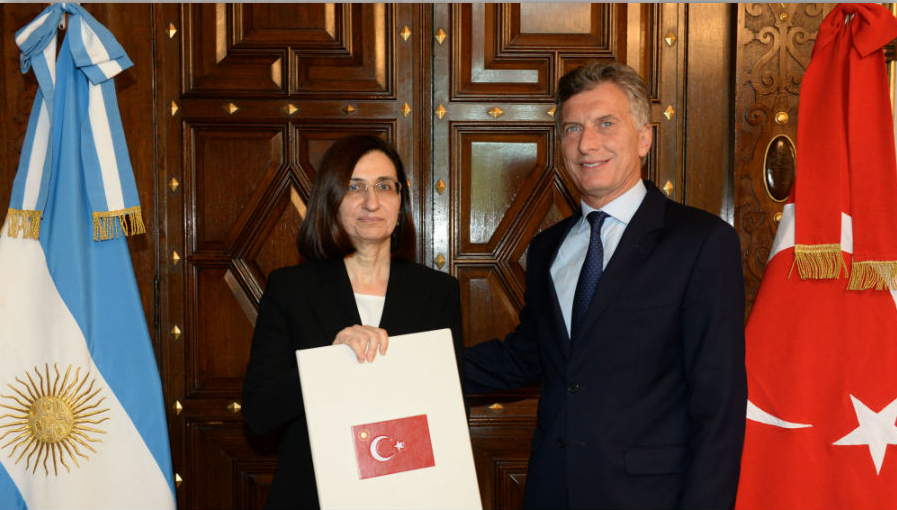 La Embajadora Meral Barlas presentó su carta de credencial al Presidente Macri y luego asistió a la ceremonia celebrada en la Plaza San Martín.